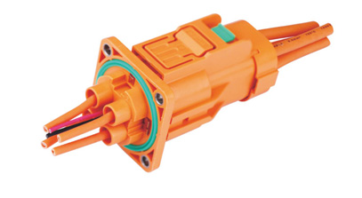 本產品是一款用于電動車、混合動力汽車市場的塑膠外殼高壓互鎖連接器,能滿足動力電池、電機控制器、PDU等多種高壓大電流的連接需求。該產品為塑膠高壓連接器,結構緊湊,兩級解鎖。可接多種電纜,有多種防誤插鍵位,帶高壓互鎖,有防手指觸電設計,360°屏蔽。