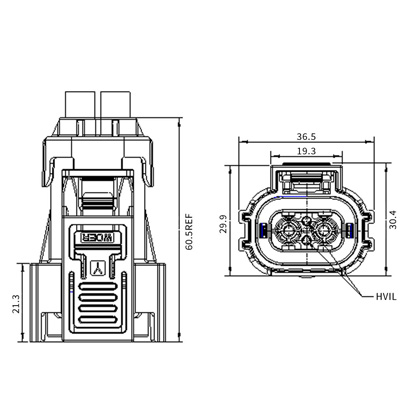 | 7 | HV280L03*H02 | 插座*鍵位帶高壓互鎖插座 | 2.5mm2非屏蔽線 |