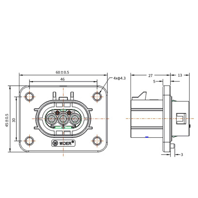 | 4 | HV280L02*N02 | 插座*鍵位無高壓互鎖插座 | 2.5mm2非屏蔽線 |