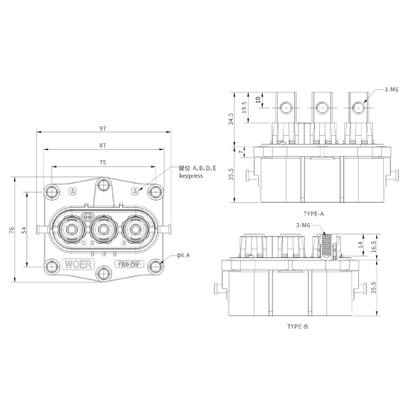 | C25 | H-銅排扁平孔鎖緊端子(僅限插座) Y-銅排內螺紋端子(僅限插座) C*-壓接線纜端子 *代表適配線纜規格 * C16-適配16平方線纜 C25-適配25平方線纜 C35-適配35平方線纜 C50-適配50平方線纜 |