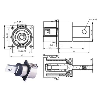 | 19 | HPLA28*-501-135 | 彎頭*鍵位帶高壓互鎖插頭 | 135mm2屏蔽線 |